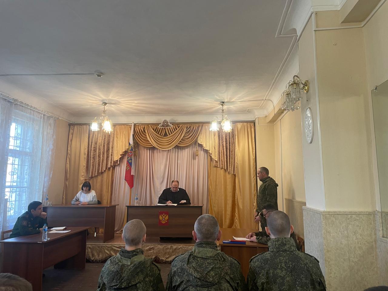 8 апреля 2025 года председатель военного суда Старовина М.Б. в одной из воинских частей Лужского гарнизона рассмотрел материал о грубом дисциплинарном проступке в отношении военнослужащего по контракту, которому за отсутствие на военной службе без уважительных причин более четырех часов подряд в течение установленного ежедневного служебного времени, назначено дисциплинарное взыскание в виде дисциплинарного ареста на срок 15 суток с отбыванием на гауптвахте. Кроме того, Михаил Брониславович провел с личным составом воинской части беседу на тему: «Совершение грубых дисциплинарных проступках в условиях мобилизации и их последствия». |